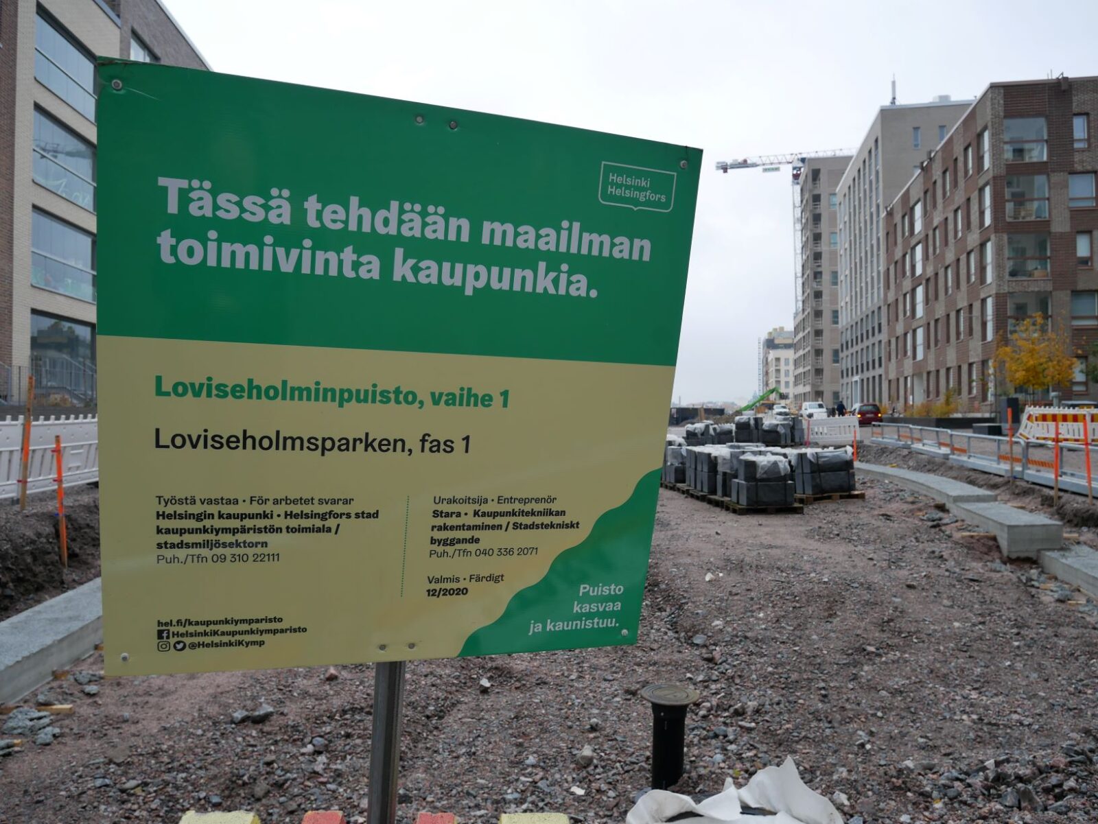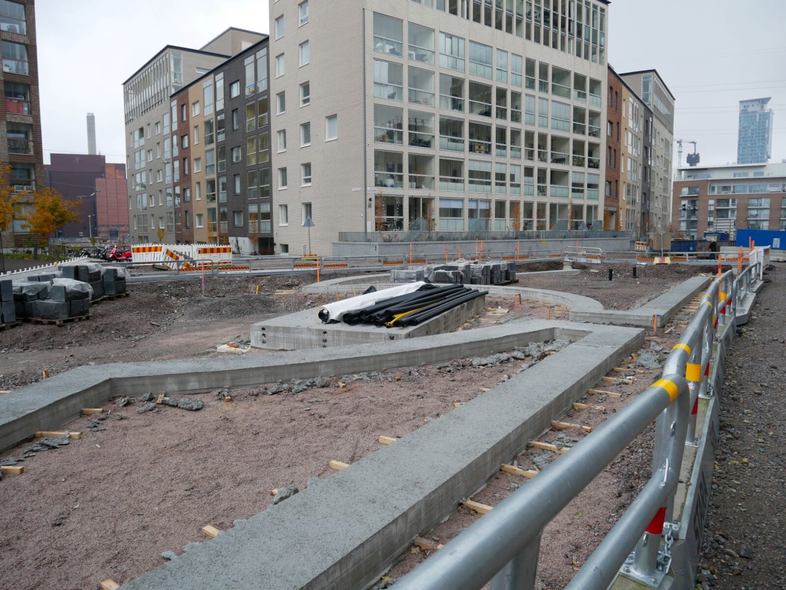 Puiston pohjoisosan rakennustyöt ovat täydessä vauhdissa.